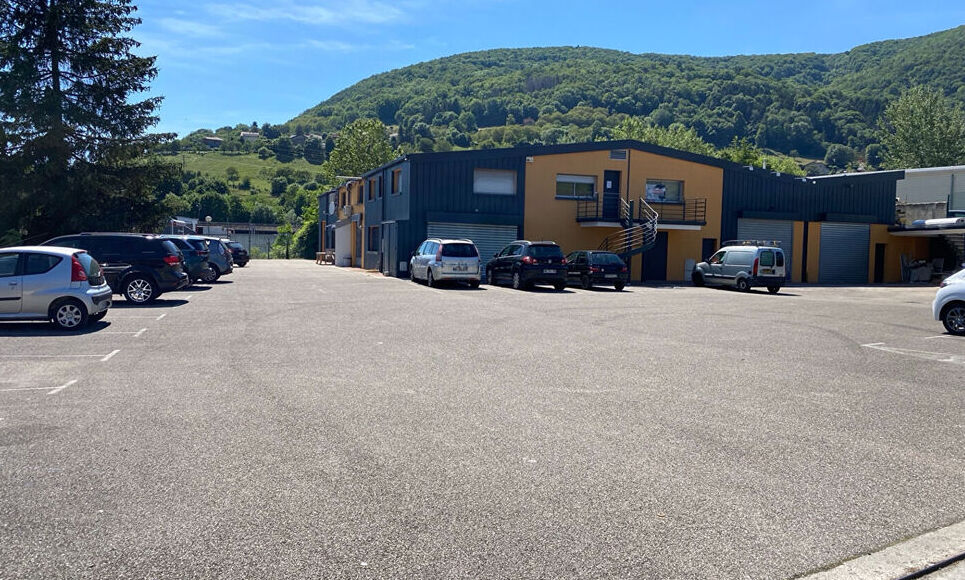 DescriptifBâtiment d'activité dans la zone des blanchisserie à VOIRON, composé de 8 LOTS dont 6 lots commerciaux et 35 places de stationnement :